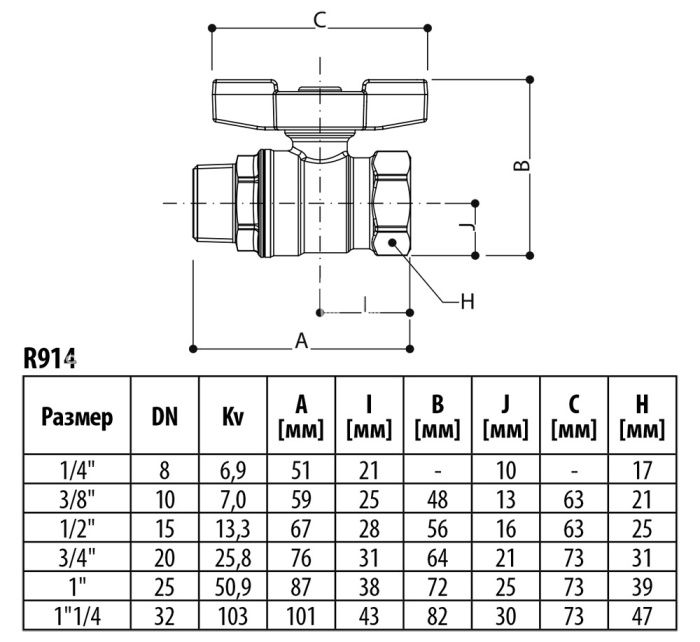 Кран шаровый Giacomini R914X025 1" ВР-НР, полнопроходной, ручка-бабочка