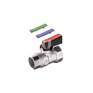 Мини шаровой кран с внутренними и внешним резьбовым соединением. Для водопроводных систем. Хромированная латунь. Стандартное отверстие. Пластиковая рукоятка рычага с цветными вставками (красными, синими или зелеными) для характеристики системы. Технические характеристики: минимальная рабочая температура, °C: 0 (с гликолевыми растворами); максимальная рабочая температура, °C: 90; материал: латунь.