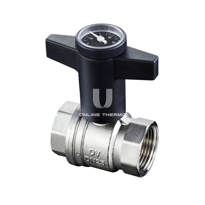 Шаровыq кран Optibal с обеих сторон внутренняя резьба, с термометром. Область применения: трубопроводная арматура для жидкостей. Шарик латунный, хромированный, уплотнение шарика - политетрафторэтилен (PTFE), уплотнительное кольцо - фторкаучук.. Максимальное рабочее давление: 16 бар; Рабочая температура: 100 °C.