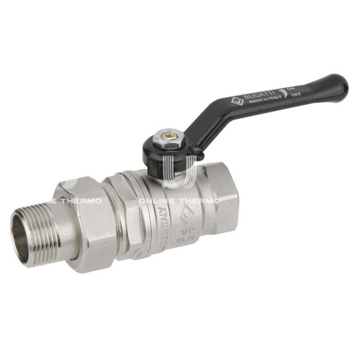 Кран шаровый с разъемным соединением Bugatti New Jersey 09200007 1"1/2 НР-ВР, 920, полнопроходной, ручка-рычаг