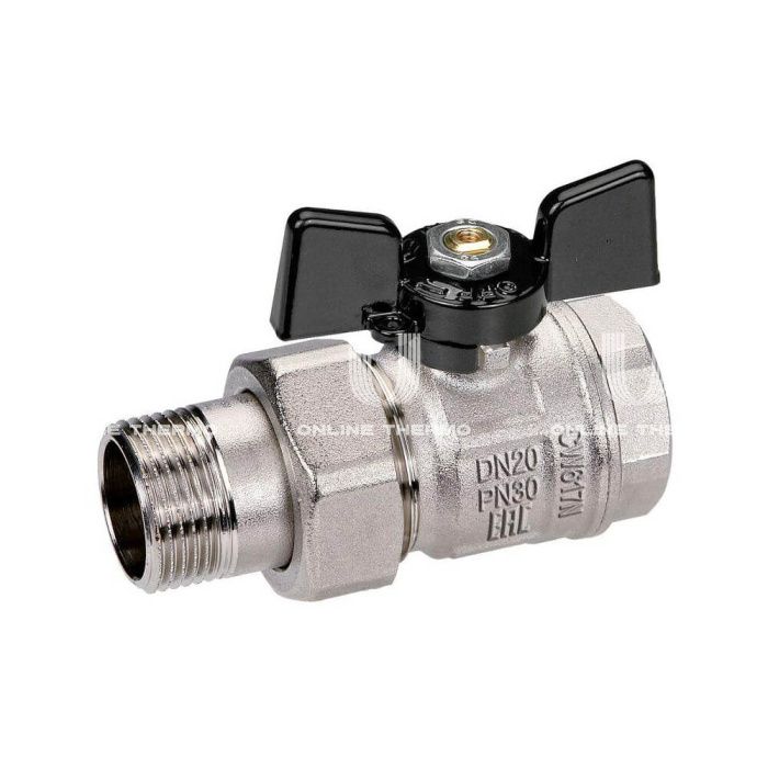 Кран шаровый с разъемным соединением Bugatti New Jersey 09220004 1/2" НР-ВР, 922, полнопроходной, ручка-бабочка
