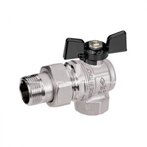 Кран шаровый угловой с разъемным соединением Bugatti New Jersey 09940001 1/2" НР-ВР, 994, полнопроходной, ручка-бабочка