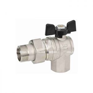 Кран шаровый угловой с разъемным соединением Bugatti Oregon 05940001 1/2" НР-ВР, 594, полнопроходной, ручка-бабочка