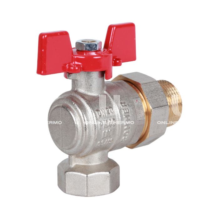 Кран шаровый угловой с разъемным соединением Rommer RBV-0006-0610220, 3/4" ВР-НР, стандартный, ручка-бабочка