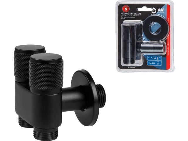 Кран вентильный угловой 1/2' нар. Х 1/2' нар. Х 1/2' нар. установочный черный, AV Engineering(Нерж. сталь, макс. 16 бар, макс. 110 °С)