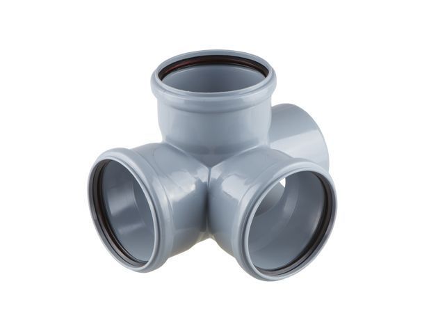 Крестовина двухплоскостная канализационная диаметром 110 мм для монтажа систем внутренней канализации.
