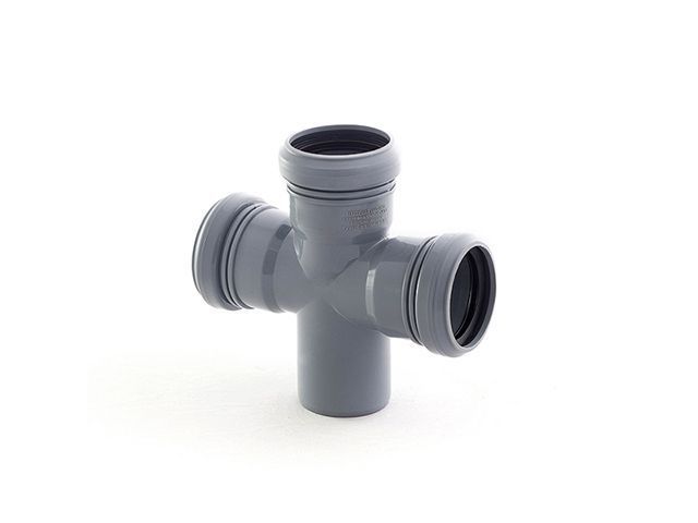 Крестовина одноплоскостная канализационная Ростурпласт диаметром 50 мм для монтажа систем внутренней канализации.