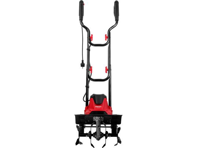 - Высокое качество обработки достигается благодаря мощному двигателю, а также большой ширине и глубине культивации. Наличие складной рукоятки способствует компактности при хранении агрегата. Колеса облегчают транспортировку. Для удобства использования инструмента предусмотрен держатель кабеля. Защитный кожух предотвращают попадание земли на оператора, а также загрязнение корпуса прибора. Инструмент изготовлен из ударопрочного пластика PA6GF30.