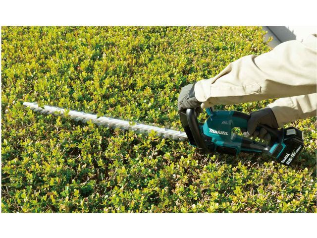 Аккумуляторный кусторез DUH606Z Makita - инструмент для формирования живой изгороди. Дизайн был переработан как снаружи, так и внутри. Ножницы оснащены бесщеточным двигателем, обеспечивающим более высокую производительность. Новая форма П-образной рукоятки обеспечивает удобный хват и позволяет комфортно нажимать кнопку под разными углами. Размер основного выключателя был увеличен для лучшего хвата и быстрого включения. Технология XPT позволяет использовать ножницы даже в дождь. Преимущества: Надежный бесщеточный двигатель BL-motor не требует технического обслуживания. Профессиональный аккумуляторный кусторез с низкой вибрацией, низким уровнем шума, малым весом и без вредных выбросов. Двухсторонние, двойные режущие лезвия, с длительным сроком службы, стандартной заточки. Электрический предохранительный тормоз. Возможность установки набора для сбора обрезанных веток.