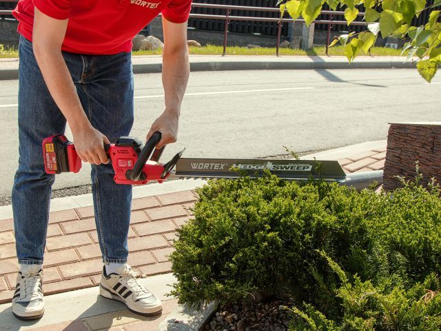 - Насадка HedgeSweep позволяет легко убирать срезанные ветви.