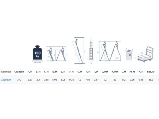 Лестница алюм. 3-х секц. 236/562/250 см 3х9 ступ. 15,9 кг NV3230 Новая Высота(макс. нагрузка 150кг)
