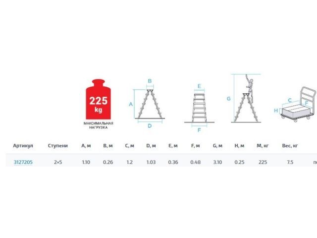 Лестница-стремянка алюм. двухст. 110 см 5 ступ. 7,5кг NV 3127 Новая высота(Макс. нагрузка - 225 кг.)