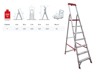 Лестница-стремянка алюм. проф. 151 см 7 ступ. 7,3кг NV3115 Новая Высота(с лотком-органайзером, макс. нагрузка 225кг)