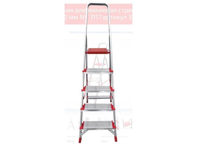 Лестница-стремянка алюм. проф. с широкой ступенью 107 см 5 ступ. 6кг NV3117 Новая Высота(макс. нагрузка 225кг)