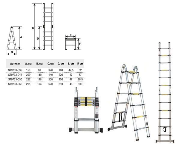 Лестница телескопическая 2-х секц. алюм. 209/440см, 2х7 ступ. 15кг STARTUL (ST9733-044)
