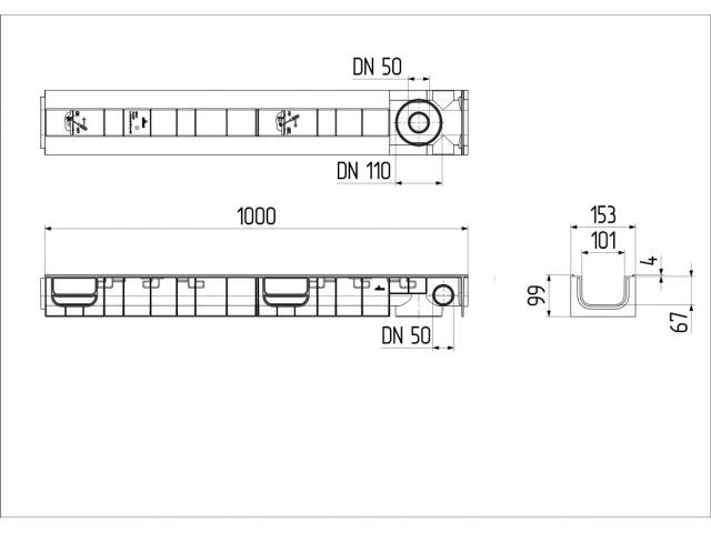 Канал пластиковый системы STANDART из вторичного ПЭ-ПП. Сформированное отверстие для подключения труб 50 мм, 110 для выпуска через дно лотка. Специальный паз для подключения других лотков под углом 90 градусов и специальным пазом для распила лотка. Класс нагрузки А 15- С 250.