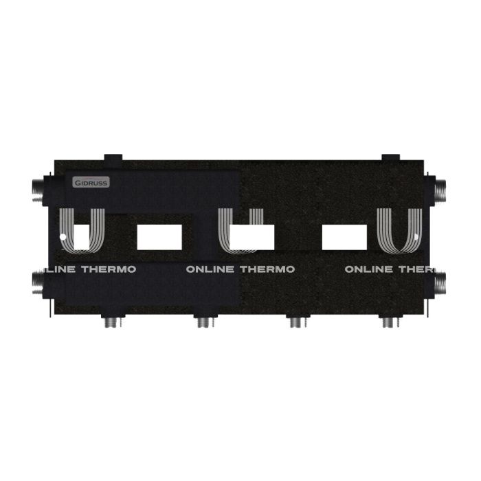 Модульный распределительный коллектор Gidruss (Гидрусс) MK-100-2.EPP, до 100 кВт, конструкционная сталь, с термоизоляцией, черный муар, универсальное подключение термодатчика