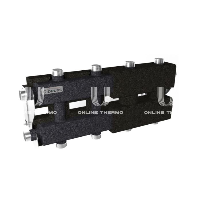 Модульный распределительный коллектор Gidruss (Гидрусс) MK-60-5DU.EPP, до 60 кВт, конструкционная сталь, с термоизоляцией, подключение для температурного датчика