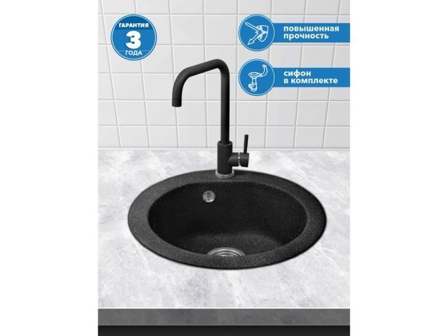 Мойка кухонная из искусственного камня GOLD черный 505х505 мм, AV Engineering