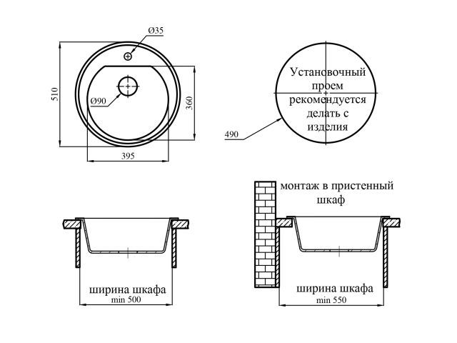 Мойка кухонная из искусственного камня RICHI черный 510х510 мм, AV Engineering