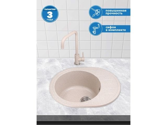 Мойка кухонная из искусственного камня RIO песочный, 570х450 мм, AV Engineering