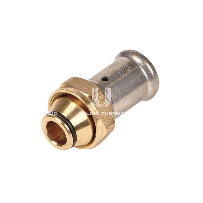 Муфта переходная (переходник под евроконус) Henco 19P-1605. Корпус фитинга HENCO изготовлен из латуни CW617N/CW614N. Фитинги имеют большие преимущества в отношении коррозии, они также имеют преимущества с точки зрения охраны окружающей среды. Оловянное покрытие образует барьер между водой и латунью. Фитинг имеет защитное кольцо, которое исключает прямой гальванический контакт между алюминием трубы и латунным фитингом. Оно исключает возможность электролитической реакции. Фитинг имеет уплотнительные кольца из EPDM и уплотнительную втулку из RVS с 3 смотровыми окнами. Пресс-фитинги HENCO следует обжимать, используя обжимные клещи HENCO BE.