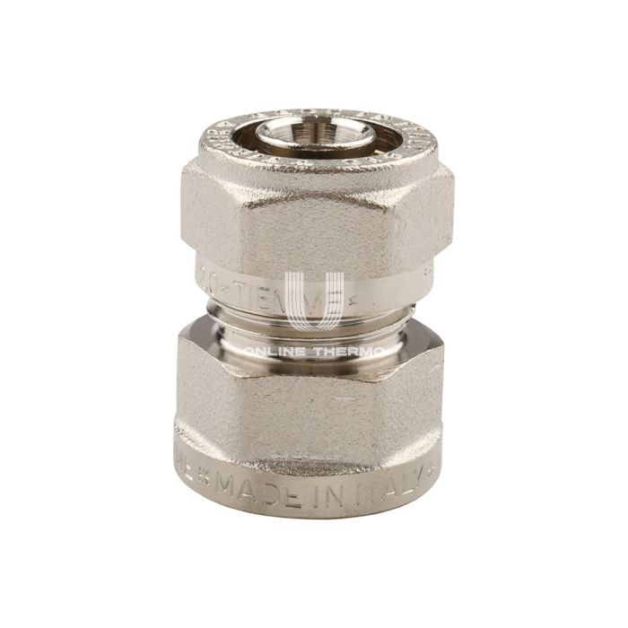 Соединительные компрессионные (винтовые) фитинги Tiemme изготавливаются в Италии и предназначены для монтажа трубопроводной системы из металлополимерных труб только в открытой проводке. Основные характеристики и преимущества Максимальная рабочая температура: 95°С Минимальная рабочая температура: -20°С Максимальное рабочее давление: 10 бар Изготавливаются методом горячей штамповки из латуни CW617N EN12165 с высокой стойкостью к вымыванию цинка Специальная термообработка усиливает антикоррозийные свойства материала и гарантирует долговечность и структурную стабильность материала Покрытие фитинга никелем обеспечивает минимальное воздействие внешней среды и стойкость к коррозии Изолирующая тефлоновая прокладка из PTFE предохраняет от образования гальванической пары «латунь / алюминий» и блуждающих токов, разрушающих металл Для обеспечения герметичности наконечник имеет специальный профиль с радиальной насечкой и уплотнительным кольцом, прилегающим непосредственно к трубе, а также диэлектрическую прокладку Простой и удобный монтаж Для монтажа системы требуются: два рожковых ключа и калибратор с фаскоснимателем Позволяют демонтировать соединения, не обрезая трубу