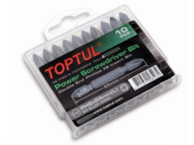 Набор бит двухсторонних PH2х65 10шт. в пластм.боксе TOPTUL