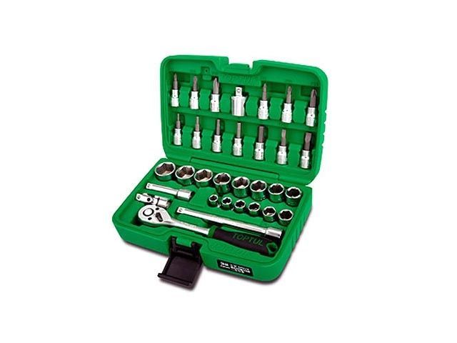 Набор торцевых головок и бит 14, 38 TOPTUL состоит из 45 предметов. Рекомендуется для профессионального использования Присоединительный квадрат 14: есть 38: есть Состав набора Воротки, трещотки: есть Трещотки: 38; (CJBG1220) Удлинители: 38; 75 мм, 38; 150 мм (CAAA1203, 1206) Карданы: 38; (CAHA1254) Переходники: 14; (Dr.) x 14; (H) (FTAB0808), 38; (Dr.) x 14; (H) (FTAB1208) Головки: есть Головки торцевые на 38 : 6, 7, 8, 9, 10, 11, 12, 13, 14, 15, 16, 17, 18, 19, 22 мм (BAEA1206-1222) Головки свечные: 38; 16 мм, 38; 21 мм (BAAR1216, 1221) Биты-насадки: есть Биты-насадки 14: Набор (GAAV0704) из 7 бит в составе SL4, SL5.5, SL6.5 мм (FSAA0804-086E), PH1, PH2 (FSBA08P1, 08P2), PZ1, PZ2 (FSCA08P1, 08P2), набор (GAAV0701) из 7 бит 2, 2.5, 3, 4, 5, 6, 8 мм (FSDA0802-0808), набор (GAAV0702) из 7 бит T10, T15, T20, T25, T27, T30, T40 (FSEA0810-0840) Отвертки: есть Прочий инструмент: вороток-отвертка 14; (CAIA0815) Прочий инструментвороток-отвертка 14 (CAIA0815)
