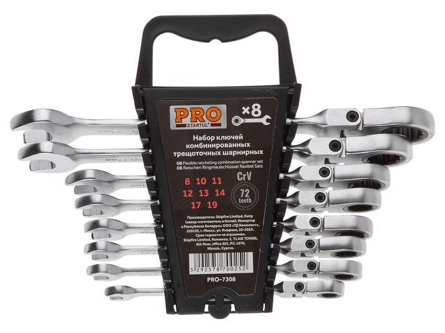 Набор ключей комбинир. 8-19мм 8шт трещоточных шарнирн. PRO STARTUL (PRO-7308)