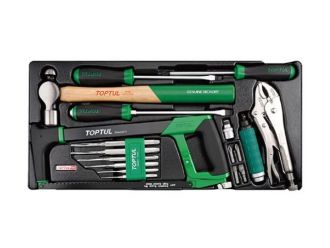 Набор-сет инструмента 18предм. TOPTUL (GZC-1803) Содержание: 1. SAAA3013 Сверхмощная слесарная ножовка (1 шт.) 2. DAAQ1A10 Плоскогубцы с изогнутой челюстью и кусачками - 10 (L) 91 шт.) 3. GAAV0601 Набор для перфорации - 2x8x115, 3x8x125, 4x10x150, 5x10x165, 6x12x180, 8x12x180 mm (6 шт) 4. HAAC2440 Шаровой молоток (24 oz) (1 шт.) 5. FIAA1615 12 Ударно-поворотная отвертка - 145mm (L) (1 шт.) 6. FTAB1610 Сменный держатель бит - 12 Dr. x 516 (H) - 38mm (L) (1 шт.) 7. FSAC1008 1010 516 Вставные биты с шестигранным хвостовиком - 1.2x8 mm 1.6x10 mm - 36mm (L) (2 шт.0 8. FSBC1002 1003 516 Биты с шестигранным хвостовиком Phillips - PH2 PH3 - 36mm (L) (2 шт.) 9. FBAB0315 Крестовая отвертка Phillips - PH3x150 ( 1 шт.) 10. FAAB0818 Шлицевая противосскользящая отвертка 8x175 мм (1 шт) 11. FAGB1020 Шлицевая отвертка - 10x200 mm