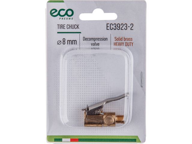 Наконечник для подкачки шин (резьба 8 мм, клапан сброса давления, латунь) ECO