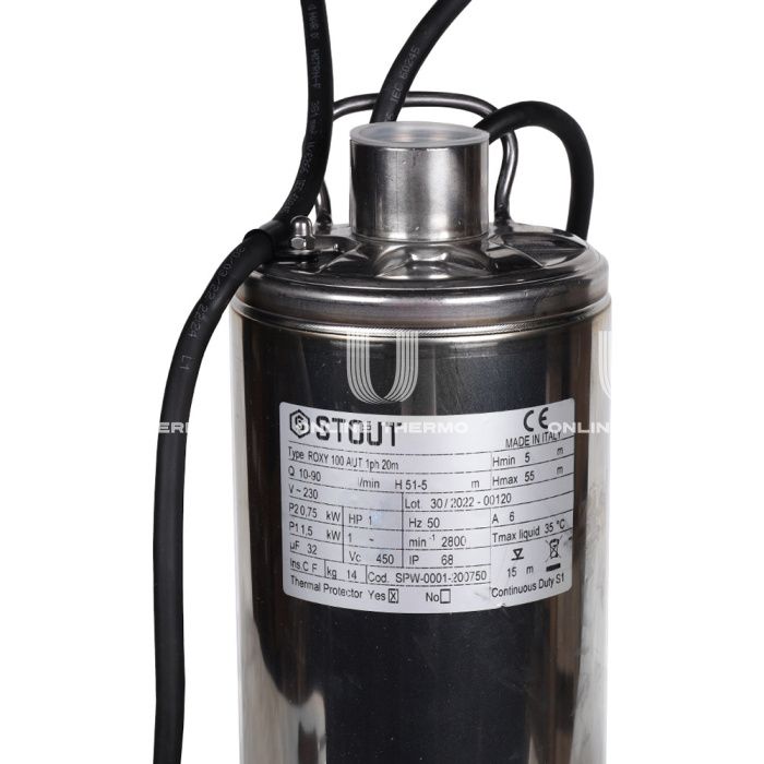 Насосы STOUT используются в установках для подъема чистой воды из колодцев, резервуаров или цистерн первичного сбора, водотоков и дальнейшей её подачи в водопроводные системы. Применяются для организации систем водоснабжения в коттеджах, небольших подсобных хозяйствах, для орошения и полива приусадебных участков. Насосы малошумны, оборудованы поплавковым выключателем для автоматического отключения при недостаточном уровне воды. SPW-0001 – это погружные насосы, предназначенные для перекачивания чистой воды в бытовых системах водоснабжения, а также для перекачивания дождевой воды. Насосы выполнены из нержавеющей стали и высококачественных композитных материалов, устойчивых к коррозии. Благодаря встроенному термовыключателю при наступлении перегрева насос незамедлительно выключается. Колодезные насосы STOUT оборудованы встроенным конденсатором с соответствующим мощности встроенного электродвигателя, а в обмотках статора установлена тепловая защита, отключающая электродвигатель при повышении температуры обмоток выше допустимого значения. Технические характеристики: диапазон температур жидкости, °С: от 0 до +50; диапазон допустимых температур окружающей среды, °С: от +5 до +50; максимальное рабочее давление, бар: 9; откачка воды с взвешенными веществами до, мм: 0; максимальная производительность, л/мин: 90.