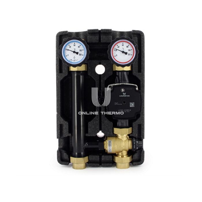 Насосная группа Uni-fitt 491H2500, смесительная с термосмесителем, DN 25 (1"), с насосом Grundfos UPM3 Hybrid 25-70 180