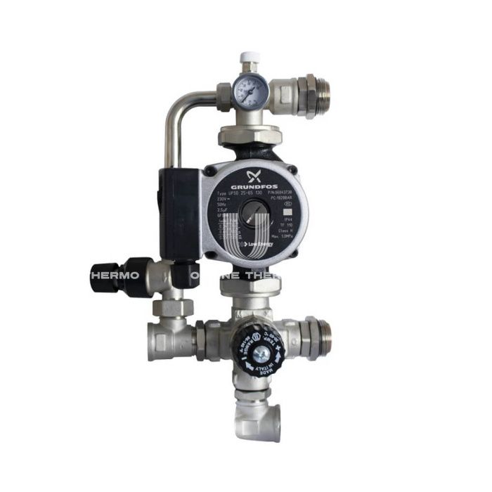 Насосно-смесительный узел Stout с термостатическим клапаном и байпасом; Grundfos UPSO 25-65 130