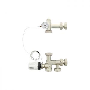 Насосно-смесительная группа SOLOMIX MINI Uni-Fitt предназначена для создания низкотемпературных систем отопления (типа «тёплый пол»). Монтируется на коллекторной группе низкотемпературного контура, подключается к высокотемпературному контуру системы отопления. Насос группы обеспечивает циркуляцию в низкотемпературном контуре отопления. Заданная температура в этом контуре поддерживается термостатическим вентилем с установленной на нём термостатической головкой с погружным датчиком температуры. Необходимое количество тепла поступает из высокотемпературного контура отопления (котла). Температура подачи теплоносителя отображается на термометре. Насосно-смесительная группа SOLOMIX MINI Uni-Fitt поставляется в 14 вариантах: С наружной резьбой без насоса (для монтажа требуется установка насоса) артикул 474M1100; с насосом Uni-Fitt SCP 15/60 130, артикул 474S1100; с насосом Wilo RS 15/6-130, артикул 474W1100; с насосом Grundfos UPSO 15-55 130, артикул 474G1100; с энергоэффективным насосом Uni-Fitt ECP 15/60 130, артикул 474E1100; с энергоэффективным насосом Wilo Para 15/6-130, артикул 474P1100; с энергоэффективным насосом Grundfos UPM3 AUTO 15-50 130, артикул 474U1100. С накидной гайкой без насоса (для монтажа требуется установка насоса) артикул 474F1100; с насосом Uni-Fitt SCP 15/60 130, артикул 474S1102; с насосом Wilo RS 15/6-130, артикул 474W1102; с насосом Grundfos UPSO 15-55 130, артикул 474G1102; с энергоэффективным насосом Uni-Fitt ECP 15/60 130, артикул 474E1102; с энергоэффективным насосом Wilo Para 15/6-130, артикул 474P1102; с энергоэффективным насосом Grundfos UPM3 AUTO 15-50 130, артикул 474U1102.
