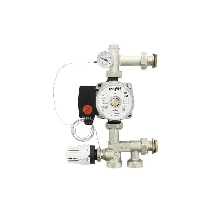 Насосно-смесительный узел Uni-Fitt Solomix Mini 474W1100, с наружной резьбой 1", c насосом Wilo RS 15/6-130