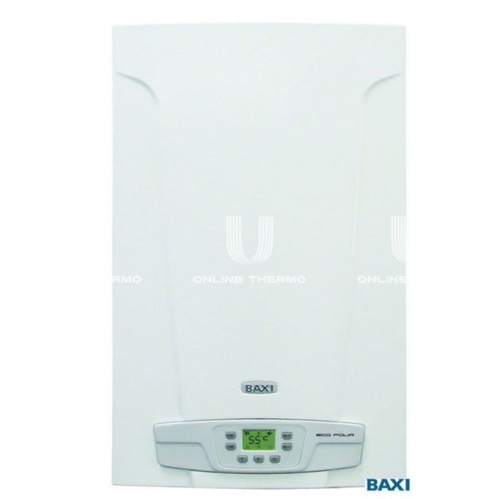 Настенные газовые сверхкомпактные (730×400×299 мм) котлы Baxi ECO Four четвертого поколения — продолжение известной в России серии ECO-3 Compact. В серии ECO Four представлены одноконтурные и двухконтурные модели с открытой и закрытой камерами сгорания мощностью до 24 кВт, и отличающиеся легкостью в установке, использовании и обслуживании. Широкий жидкокристаллический дисплей прост и удобен в обращении, непрерывно и точно отображает как текущее состояние котла, так и устанавливаемые параметры. ГАЗОВАЯ СИСТЕМА: Непрерывная электронная модуляция пламени в режимах отопления и ГВС; Плавное электронное зажигание; Котлы адаптированы к российским условиям. Устойчиво работают при понижении входного давления природного газа до 5 мбар; Рассекатели пламени на горелке изготовлены из нержавеющей стали; Запатентованная система регулирования подачи воздуха (модели с закрытой камерой); Возможна перенастройка для работы на сжиженном газе. ГИДРАВЛИЧЕСКАЯ СИСТЕМА: Турбинный датчик протока горячей воды (расходомер); Первичный медный теплообменник, покрытый специальным составом для дополнительной защиты от коррозии; Энергосберегающий циркуляционный насос со встроенным автоматическим воздухоотводчиком; Вторичный пластинчатый теплообменник из нержавеющей стали (двухконтурные модели); Латунный трехходовой клапан с электрическим сервоприводом (двухконтурные модели); Манометр; Автоматический байпас; Постциркуляция насоса; Фильтр на входе холодной воды; Возможность подключения к солнечным коллекторам. ТЕМПЕРАТУРНЫЙ КОНТРОЛЬ: Два диапазона регулирования температуры в системе отопления: 30-85°С и 30-45°С (режим «теплые полы»); Встроенная погодозависимая автоматика (возможность подключения датчика уличной температуры); Регулирование и автоматическое поддержание заданной температуры в контурах отопления и ГВС; Цифровая индикация температуры; Возможность подключения комнатного термостата и программируемого таймера. УСТРОЙСТВА КОНТРОЛЯ И БЕЗОПАСНОСТИ: Жидкокристаллический дисплей с кнопочным управлением; Электронная система самодиагностики; Возможность вывода сигнала о блокировке котла на пульт диспетчера; Ионизационный контроль пламени; Система защиты от блокировки насоса (включается автоматически каждые 24 ч); Система защиты от блокировки трехходового клапана (включается автоматически каждые 24 ч); Защитный термостат от перегрева теплоносителя в первичном теплообменнике; Датчик тяги для контроля за безопасным удалением продуктов сгорания (пневмореле — для моделей с закрытой камерой сгорания, термостат — для моделей с открытой камерой); Прессостат в системе отопления — срабатывает при недостатке давления теплоносителя; Предохранительный клапан в контуре отопления (3 бар); Система защиты от замерзания в контурах отопления и ГВС.