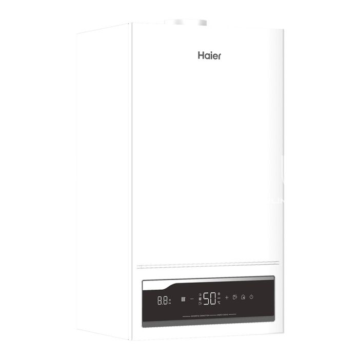 Настенный газовый котел Haier серии RC3 имеет закрытую камеру сгорания с принудительной системой дымоудаления. Может подключаться как к раздельному (80/80), так и к коаксиальному (60/100) дымо-воздуховоду, что позволяет устанавливать его в помещениях при отсутствии стационарного дымохода. Котлы данной серии оснащены инновационным решением: первичным теплообменником, изготовленным из бескислородной меди «Oxygen-Free Copper», который отличается высокой надежностью и сегментной горелкой, которая способна работать в очень широком диапазоне мощности. Прибор является двухконтурным и помимо отопления имеет функцию нагрева горячей воды, для производства которой используется вторичный теплообменник из нержавеющей стали с увеличенным количеством пластин. Котел дополнительно снабжен датчиками температуры холодной и горячей воды, а также расходомером, что позволяет в форсированном режиме мгновенно нагреть и поддерживать на комфортном уровне температуру горячей воды. Долговечность котла обеспечивает гидравлический блок из высококачественной латуни пищевой марки CW617. Полностью адаптирован для российских условий эксплуатации и устойчиво работает при низком давлении газа от 3,5 мбар и нестабильном электропитании напряжением от 170 В. Технические характеристики: объем расширительного бака, л.: 10; расход воды (△T=25℃), л/мин: 17,3; площадь отопления, м²: до 320; диапазон регулирования температуры (теплый пол/радиаторы), °С: 35-60 / 35-85; диапазон регулирования температуры ГВС, °С: 35-60; потребляемая мощность, Вт: 115.
