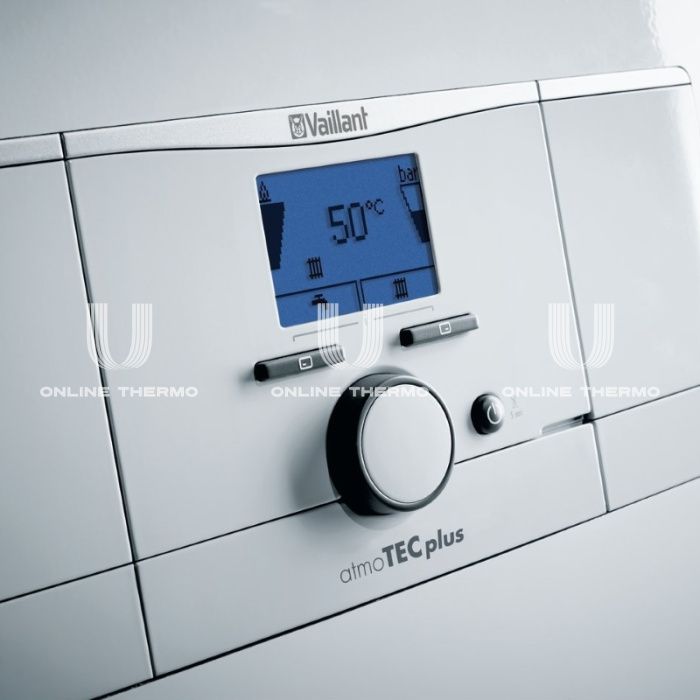 Настенный медный газовый котел Vaillant серии atmoTEC plus VU 280/5-5 мощностью 28 кВт используется для отопления и нагрева воды (в комбинации с емкостным водонагревателем). Подходит для реконструируемых и строящихся жилых домов и квартир. Возможна установка в жилой зоне. Возможно комбинировать с различного вида водонагревателями типа VIH для приготовления горячей хозяйственной воды. Основные свойства: мощность аппарата регулируется модулирующей горелкой; естественный отвод продуктов сгорания в дымоход; встроенный трёхходовой переключающий вентиль; возможность каскадирования; встроенный циркуляционный насос с автоматическим переключением ступеней; закрытый расширительный бак; автоматический воздухоотводчик; автоматический настраиваемый перепускной вентиль, предохранительный вентиль; интеллектуальный контроль давления в системе отопления; первичный теплообменник из меди со средним КПД>=91%; горелка из хромо-никелевой стали; постоянно действующая защита от замерзания; защита от заклинивания насоса и 3-х ходового вентиля при их простое более 24 ч; возможность настройки на частичную мощность в режиме отопления; электронное зажигание и управление всеми функциями; контроль состояния и поиск неисправностей через систему диагностики с ЖК-дисплеем с подсветкой и большими кнопками; присоединительный комплект в объёме поставки; встроенный коммутационный модуль для интерфейса стандарта eBus; гарантия 2 года.