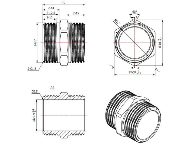 Материал:Латунь (CW617N)