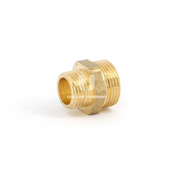 Ниппель резьбовой переходной итальянского производителя Uni-fitt изготавливается из латуни и предназначен для создания герметичного постоянного или разъемного соединения трубопроводов разных диаметров, а также присоединения элементов запорно-регулирующей арматуры. Ниппель представляет из себя цилиндр с резьбой, нарезанной с двух сторон на внешней его части, на каждом ниппеле имеется специальный участок шестигранной формы для его удобного монтажа гаечным ключом. Данные изделия обычно используют на трубопроводах холодного питьевого водоснабжения, горячего водоснабжения, хозяйственного водоснабжения, отопления, сжатого воздуха, технологических трубопроводах, транспортирующих жидкости, неагрессивные к материалу изделия.