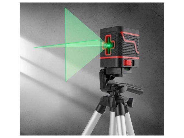 Компактный кросс-линейный нивелир для простых задач по построению плоскостей, отличается зеленым диодом, позволяющим работать в условиях высокой освещенности. Оснащен функцией автоматической настройки имеет прорезиненые боковые грани корпуса, что выполняет противоударную функцию. Есть возможность фиксации лучей. Поставляется в комплекте со штативом 65 см. Тип лазера: 635-670 нм класс 2 1 мВт Функция самонивелирования: есть; Лазерный крест: есть; Цвет луча: зеленый; Точность: - 0,4 ммм; Рабочий диапазон: 15 м; Диапазон самонивелирования: - 4; Угол развертки луча: 110 гр.; Корпус: IP54; Тип питания: элемент питания: 21,5 В тип АА; Резьба: 14; Штатив: есть; Время нивелирования: 3 с; Диапазон рабочих температур: -10С до 50С; Масса: 280 г; Упаковка: картонная коробка, тканевая сумка Гарантийный срок - 2 года.