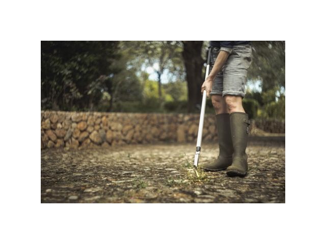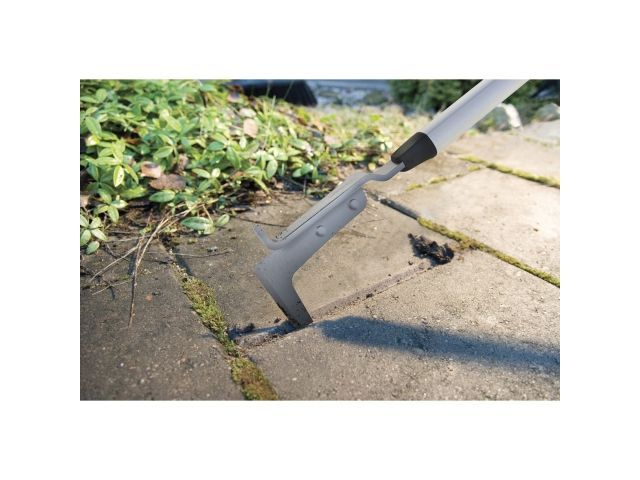 Эффективное орудие для удаления сорняков и мха между брусчаткой и патио. Длина: 1730 мм Ширина: 29 мм Высота: 95 мм Вес: 730 г Материал: Сталь со сплава алюминия Лезвие орудия выполнено из стали двойной закалки и покрыто антикоррозийным веществом. Также на рукояти вы увидите накладки из пластика для предотвращения скольжения рук.