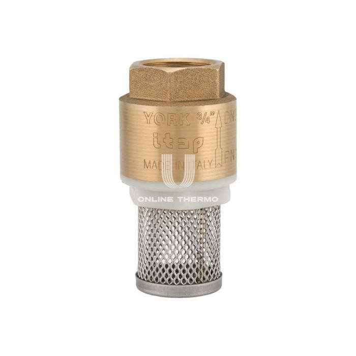 Погружные клапаны Itap York 108 предназначены для использования в системах отопления, водоснабжения частных домов, кондиционирования, в системах сжатого воздуха. Клапаны York управляют проходящим через них потоком только в одном направлении, что обозначено стрелкой на корпусе. Клапаны состоят из пружины, собственно клапана, латунного корпуса и концевика с резьбой. Чтобы предотвратить поломку, при установке нужно внимательно следить за правильным соединением труб и клапана, за соблюдением гидравлических норм, в частности, клапан должен быть установлен на расстоянии не меньше чем десять диаметров трубы от изгибов или циркуляционных насосов. Если транспортируемая жидкость содержит примеси, необходимо удостовериться, что фильтр погружного клапана предназначен для таких примесей. Особенности клапанов Itap York 108: Универсальная установка: горизонтально, вертикально, под наклоном. Материал корпуса латунь, диск нейлоновый, уплотнение - NBR, пружина из нержавеющей стали. Фильтр - ацетил-сополимер и нержавеющая сталь. Степень фильтрации для диаметров от 3/8" до 2" 1200 μm, от 2" до 4" 2000 μm. Минимальная и максимальная рабочая температура: -20°C, 100°C. Резьба ISO 228 (эквивалентно DIN EN ISO 228 и BS EN ISO 228).