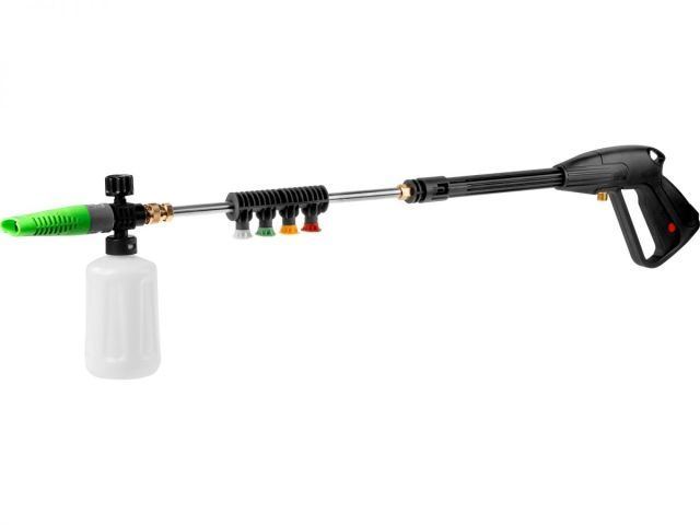 Очиститель высокого давления позволяет очистить автомобиль, садовый инструмент, а также будет незаменимым помощником при уборке помещения или фасада здания. Данная модель достаточно компактна и удобна в использовании. Оснащена асинхронным бесщёточным двигателем, за счет чего служебный ресурс очистителя значительно выше щёточных моделей, двигатель меньше нагревается и подходит для длительного использования. Алюминиевый корпус насоса обеспечивает долгий срок службы. Функция самовсасывания позволяет использовать очиститель без подключения к водопроводу. Материал корпуса - ударопрочный армированный пластик. Благодаря этому модель устойчива к механическим повреждениям и преждевременному износу. Устройство характеризуется высокой производительностью, что позволяет эффективно удалять загрязнения. В комплект поставки входит пеногенератор, грязевая фреза для удаления стойких загрязнений, 4 веерных сопла под различные нужды, фильтр тонкой очистки. Комплект поставки: - Шланг высокого давления 8 м; - Рукоятка; - Пистолет; - Трубка-удлинитель; - Грязевая фреза; - Веерное сопло - 4 шт.; - Пеногенератор; - Фильтр тонкой очистки; - Прочистная иголка; - Болт - 2 шт.; - Винт - 2 шт.; - Паспорт; Гарантийный срок - 2 года.