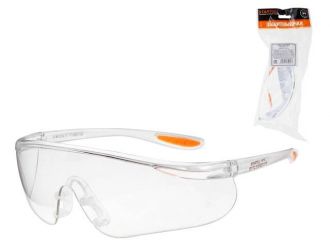 - увеличенная защита сверху и сбоку защитит глаза от механических воздействий твердых частиц, каплей жидкостей;