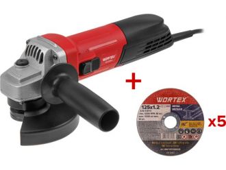 - Новая модель УШМ имеет более мощный двигатель с регулировкой оборотов, новый прочный корпус, шариковый подшипник, кожух защитный. Для большего ресурса, имеются дополнительные вентиляционные отверстия для охлаждения двигателя. Так же в подарок к ушм идет 5 отрезных кругов WORTEX 125x1,2x22,2 мм.