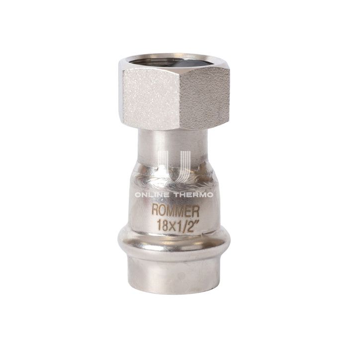 Переходник однораструбный с накидной гайкой Rommer RSS-0026-001812, 1/2"?18 мм, пресс-обжим