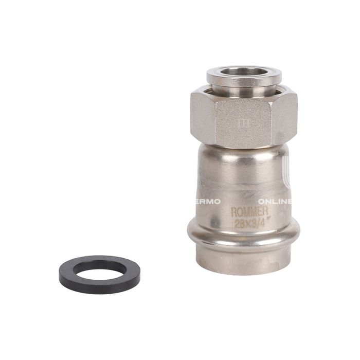 Переходник однораструбный с накидной гайкой Rommer RSS-0026-002834, 3/4"?28 мм, пресс-обжим